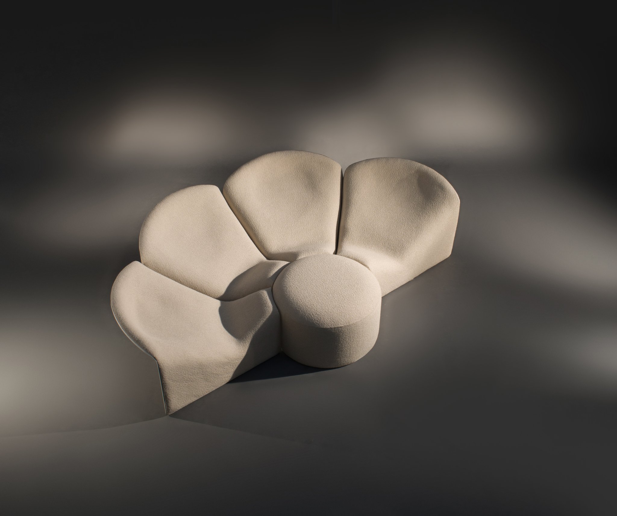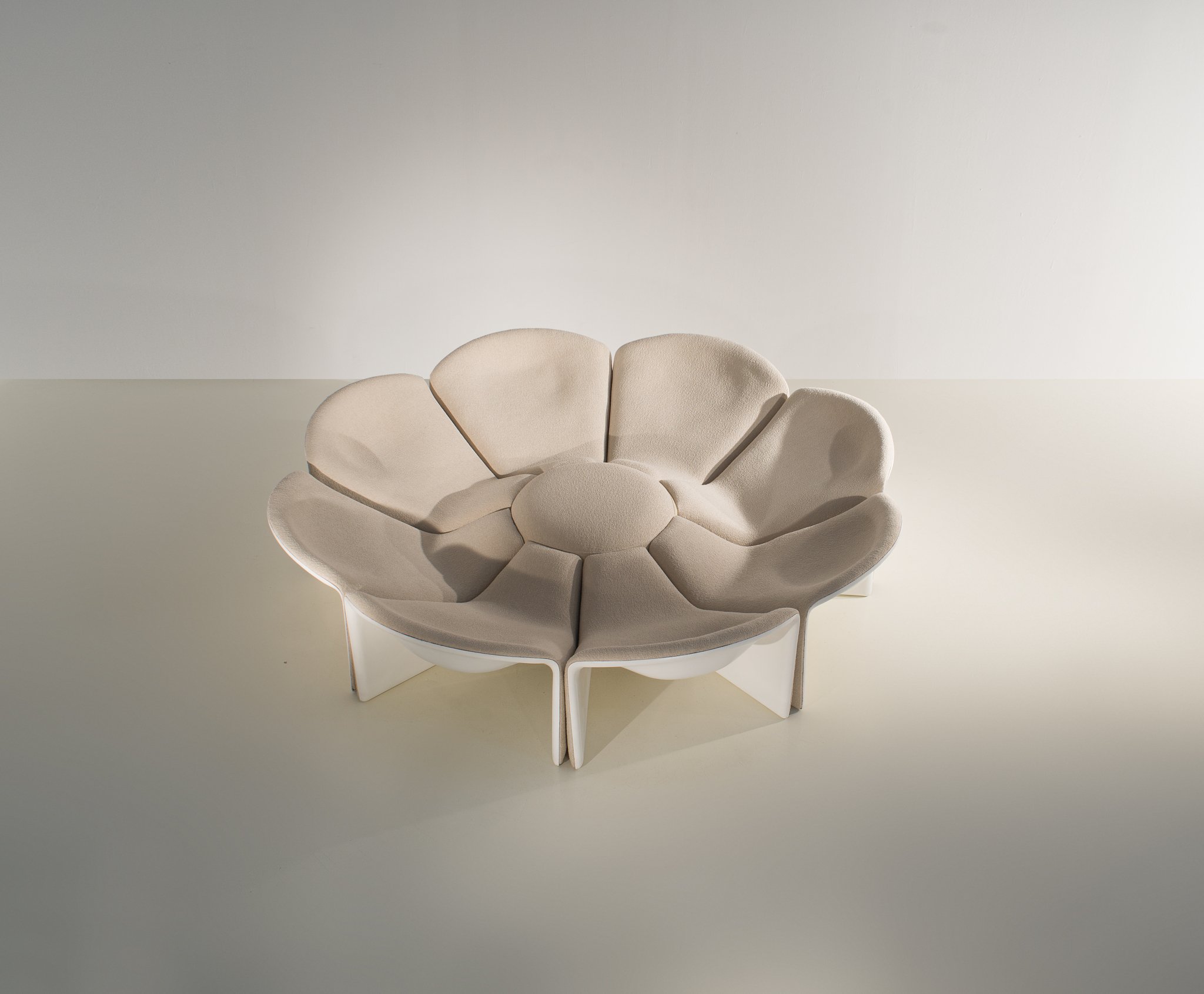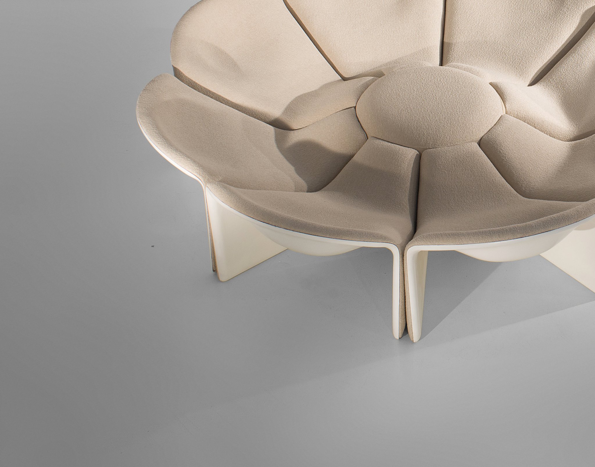 Diamètre. 295 cm ; H. assise. 44 cm ; H. dossier. 68 cm.