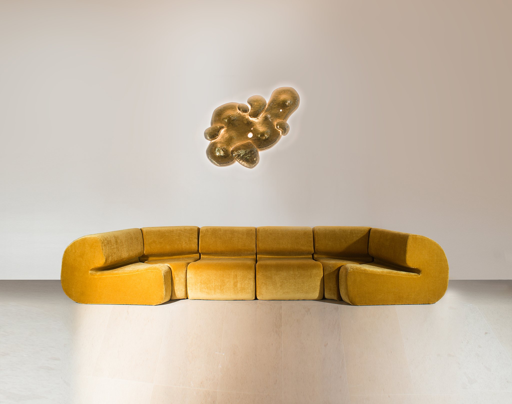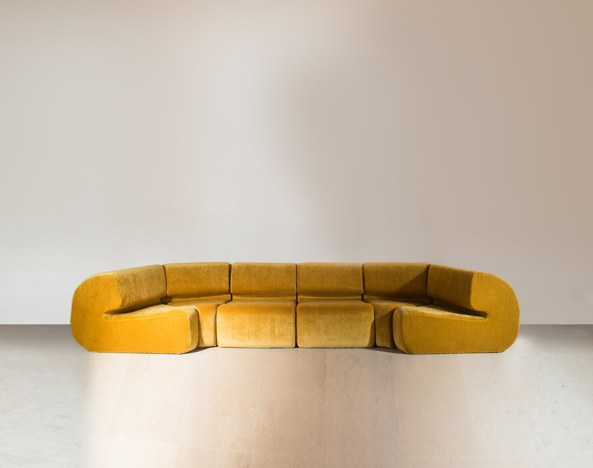 L. 350 cm ; D. 100 cm ; H. seat 38 cm ; H. back 60 cm.