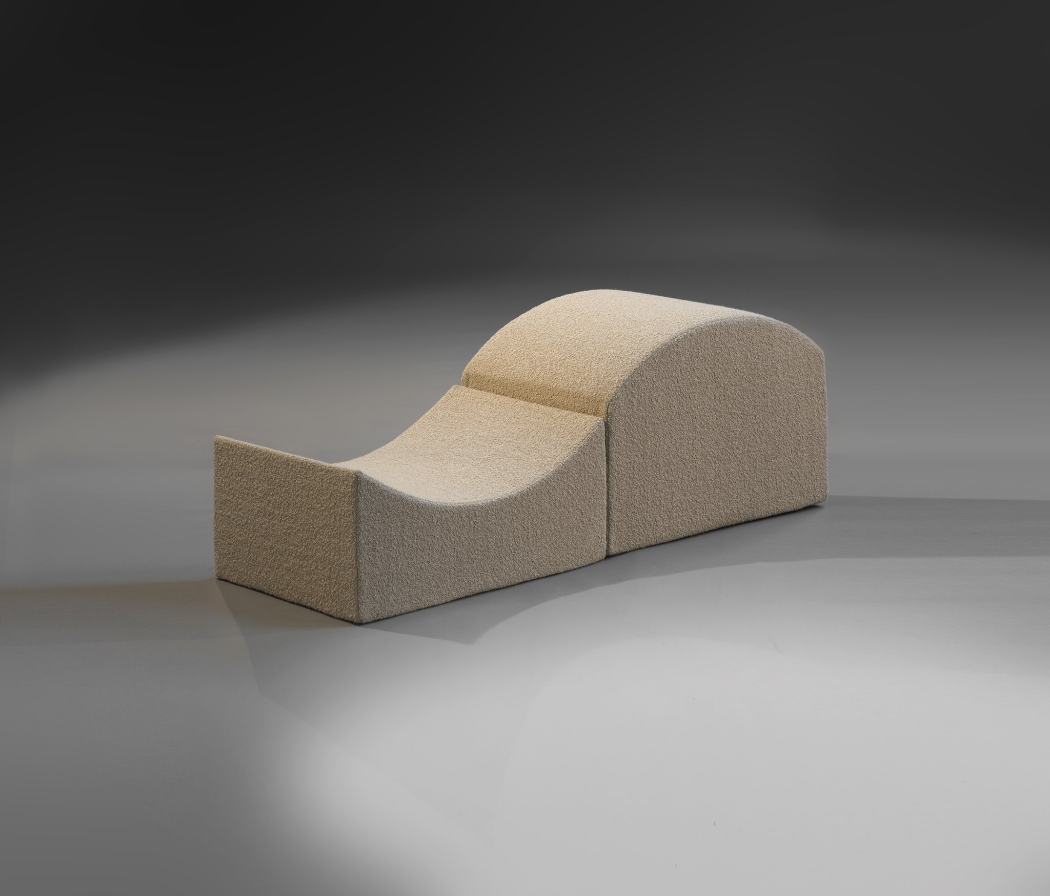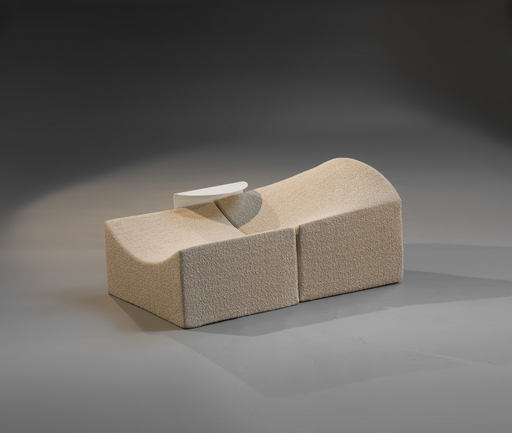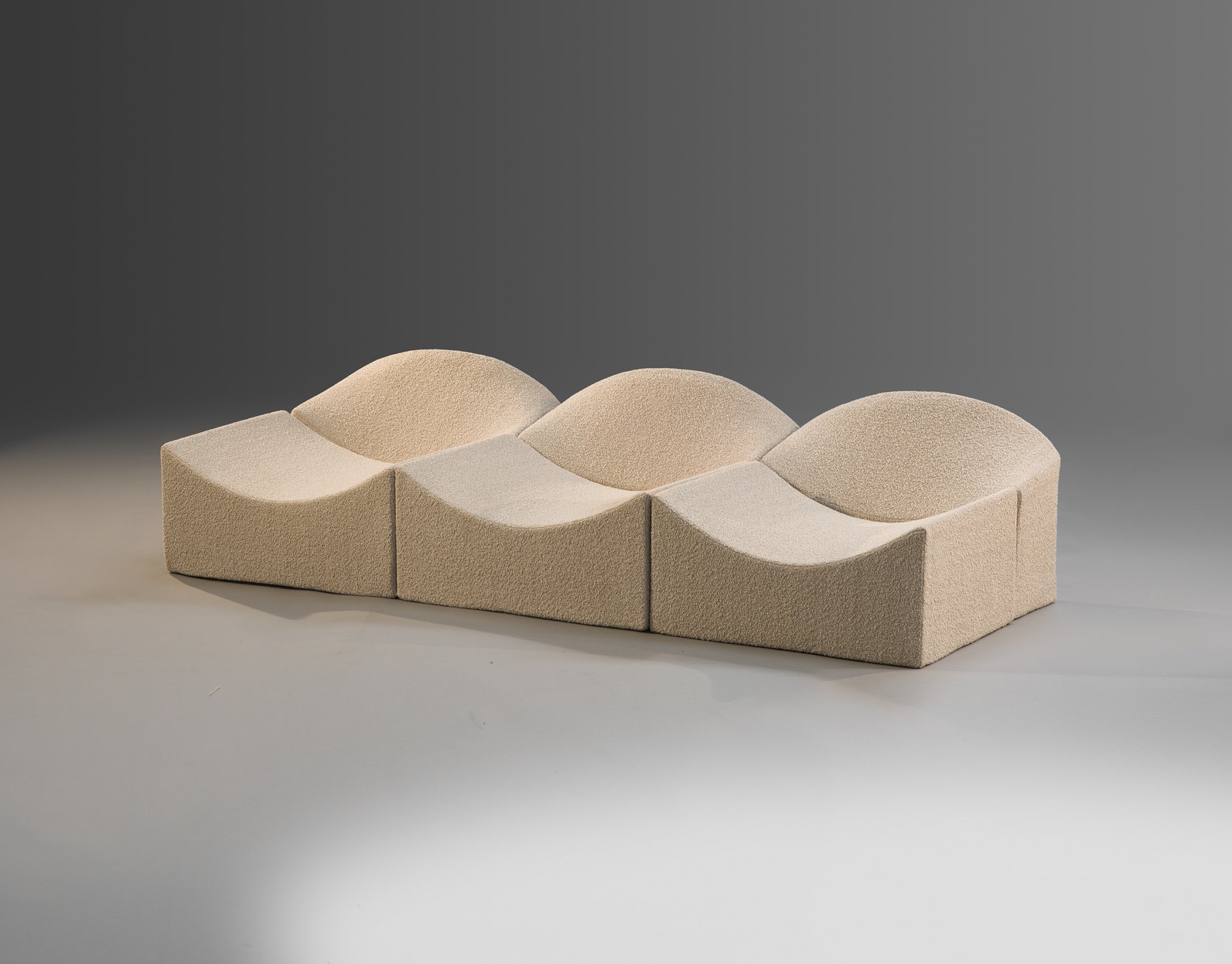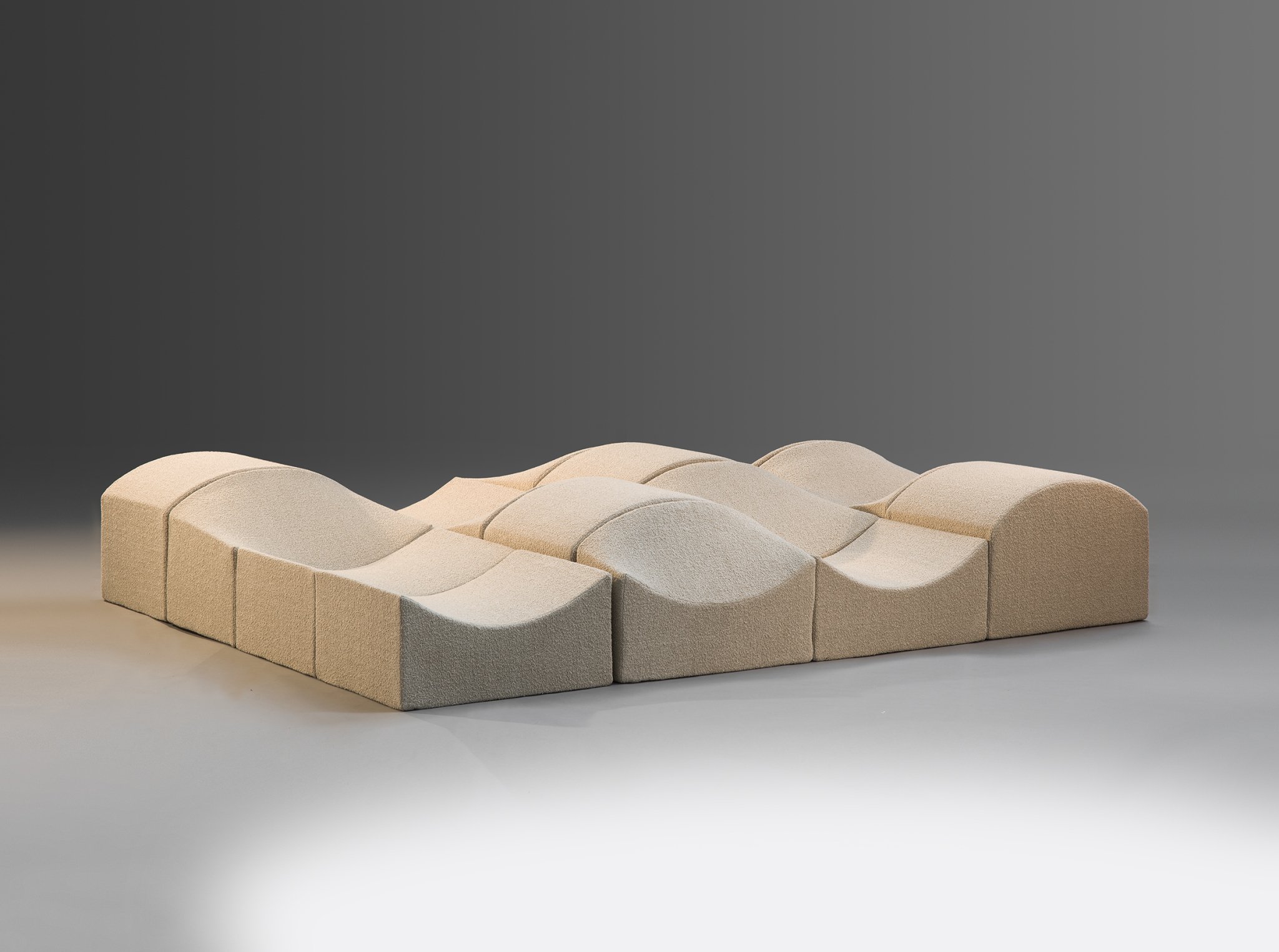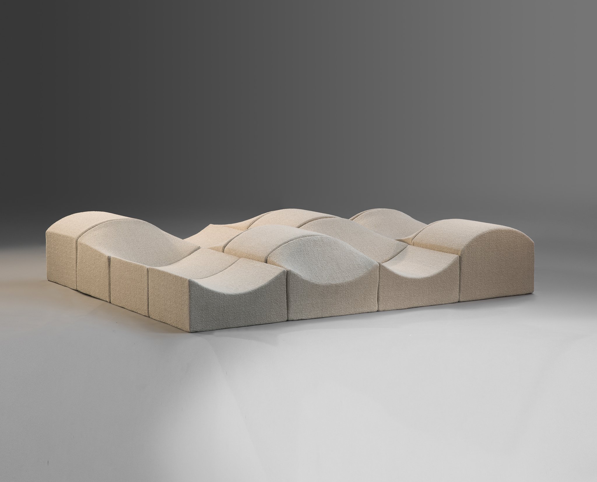 With 20 seats elements, 2 small tables et d 1 coffee table. Entirely modular.