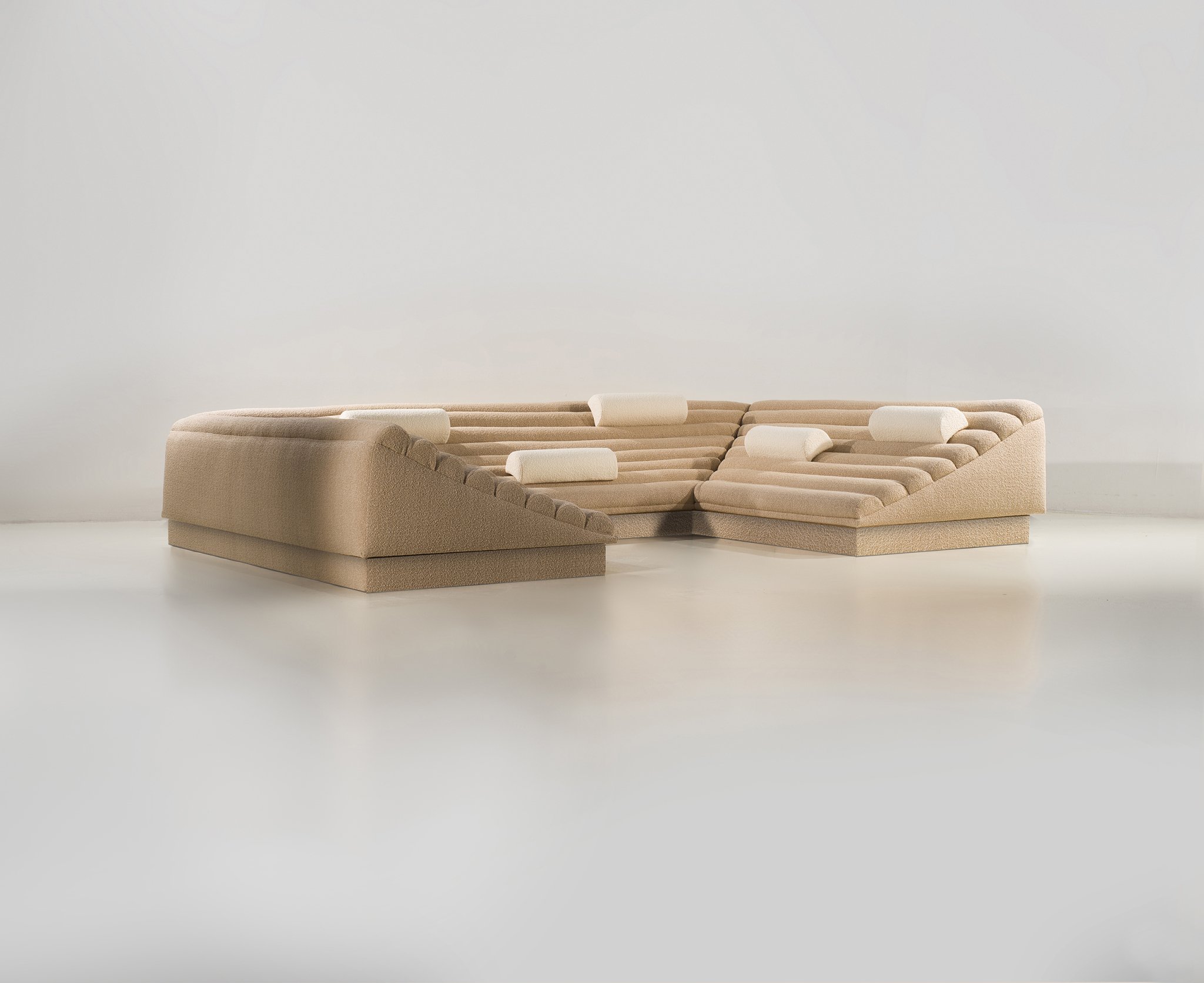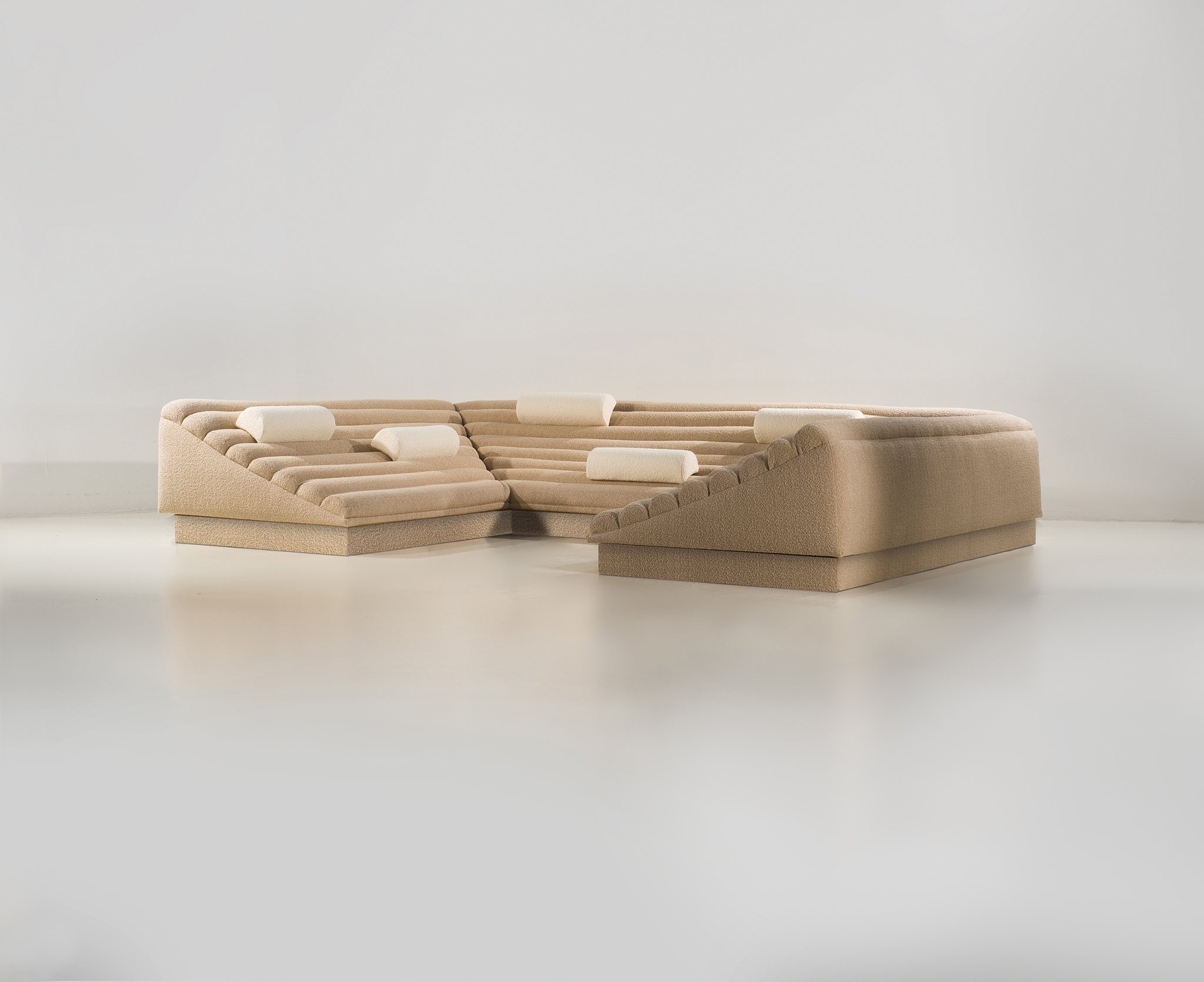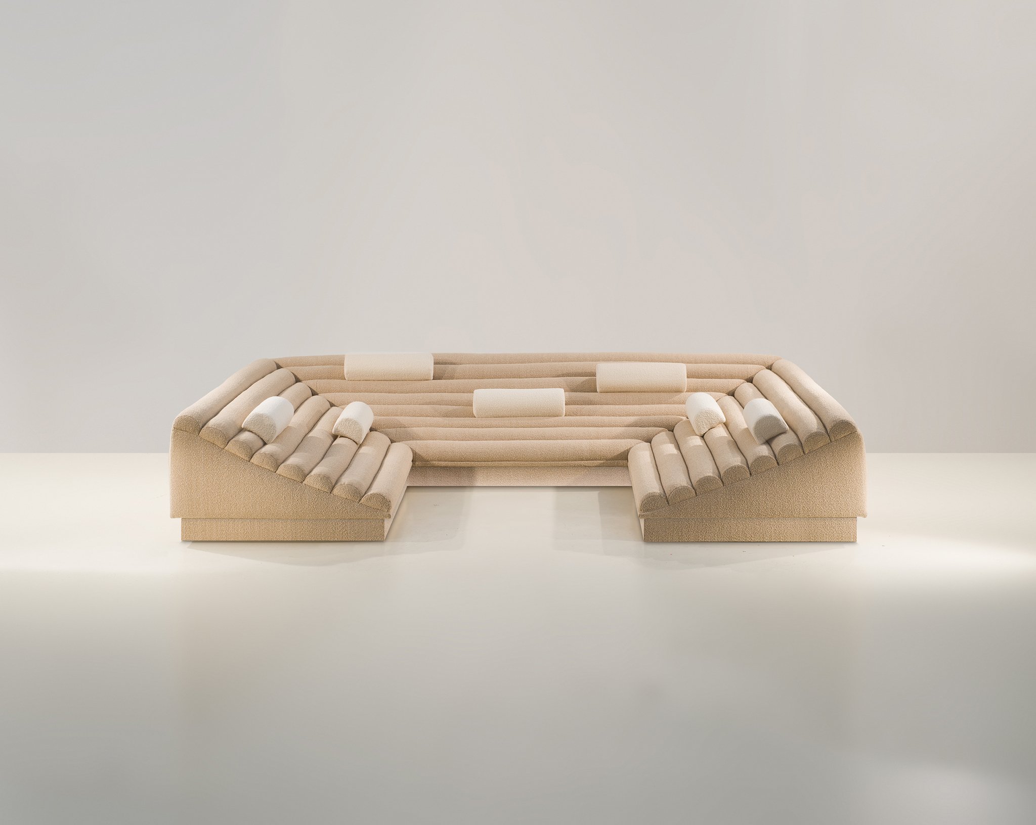 This remarkable sofa was designed in the 1970s by Maurice Marty at the request of Parisian collectors for one of the salons of their apartment. A unique piece, it stands as a striking testimony to the designer’s bold and sculptural approach.