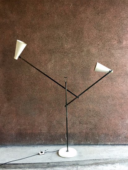Floor lamp by Franco Buzzi.Lacquered metal, marble and gun metal finish.Edition O'Luce, Italy, circa 1950.