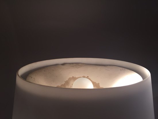 Lacquered metal and opal glass.