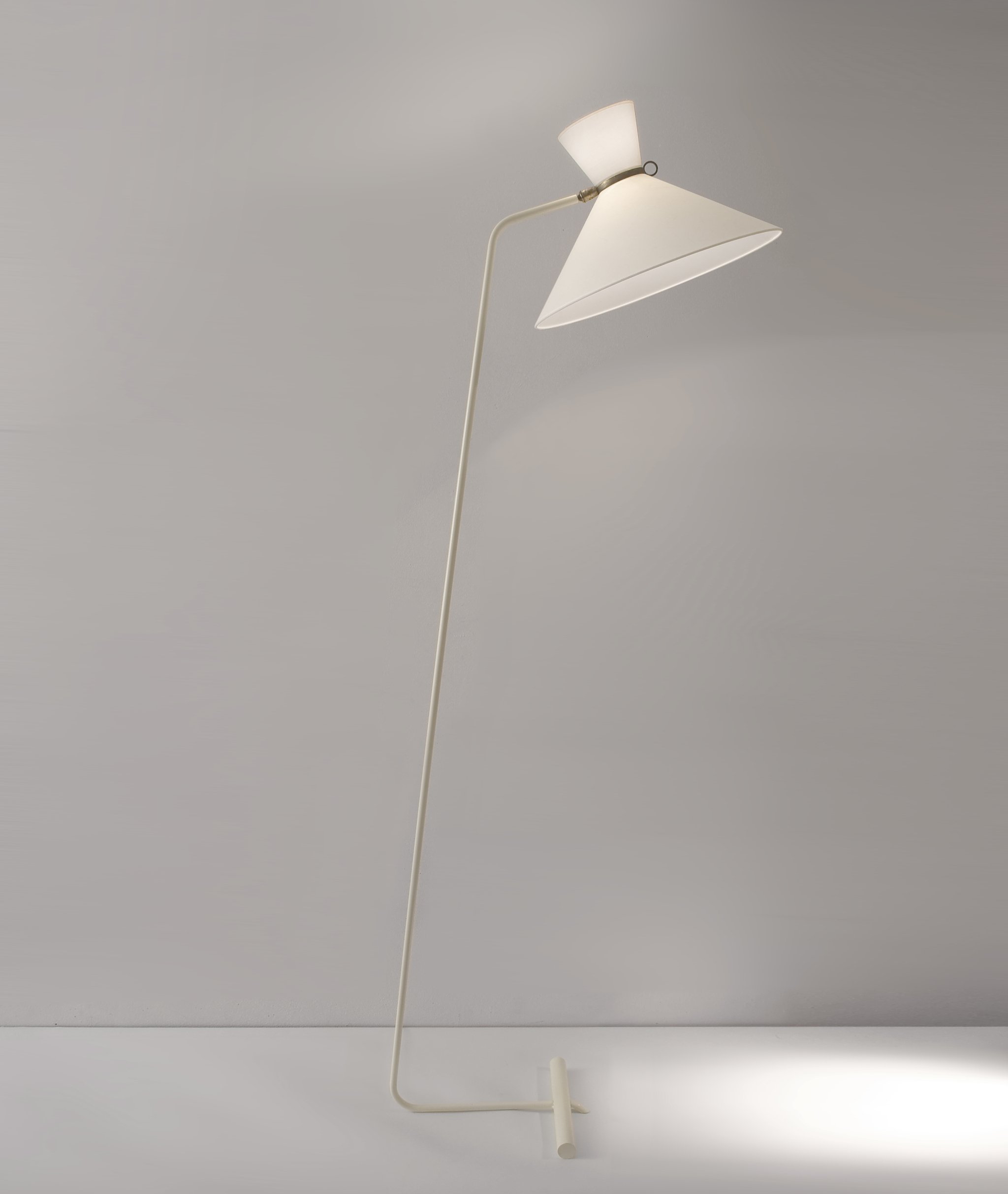 White lacquered floor lamp with counterweights by Robert Mathieu