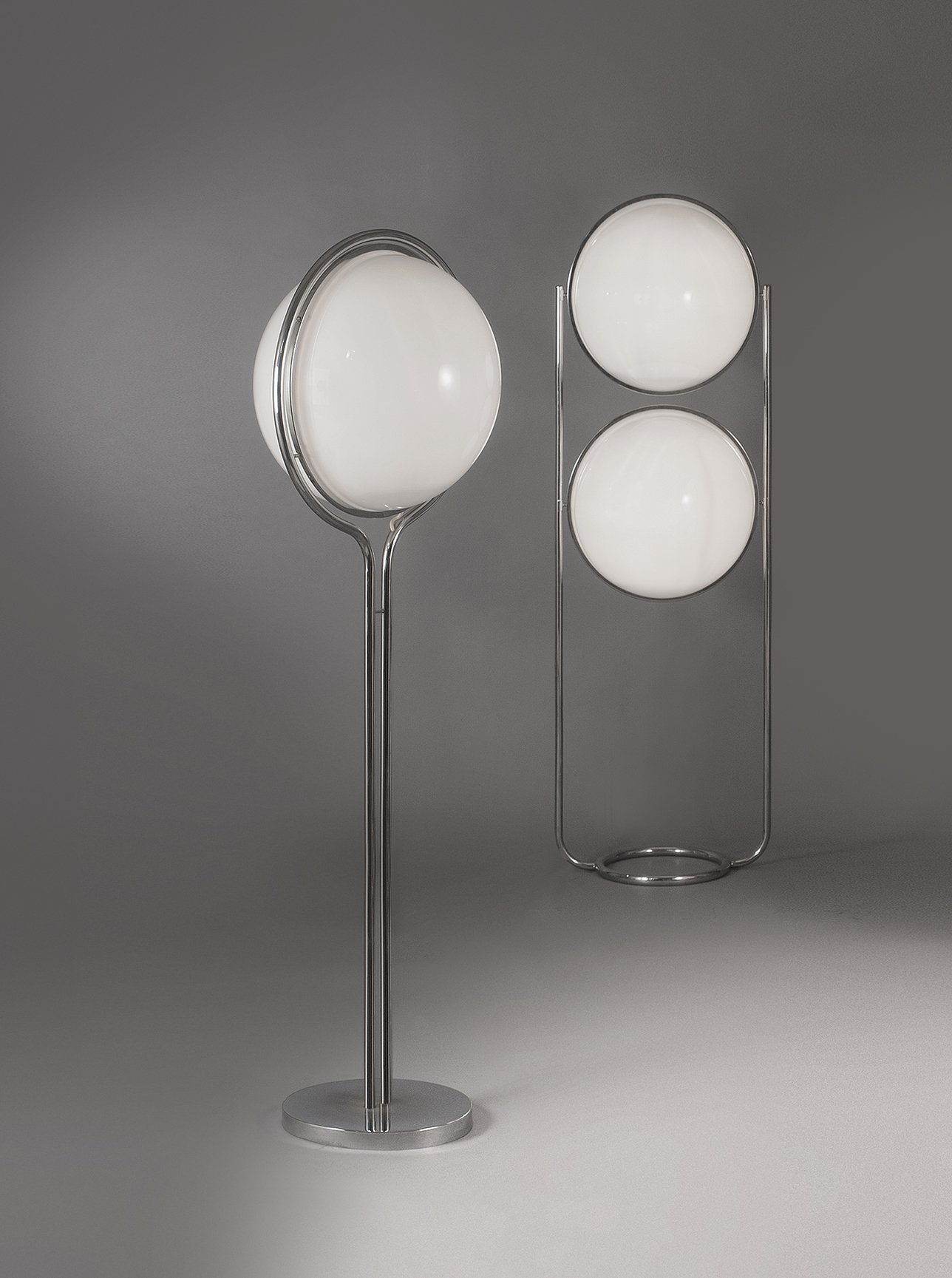 Floor lamp by Garrault Delord.One ball model.Metal and plastc.Chabrieres edition. France, c. 1970.H. 143 cm.