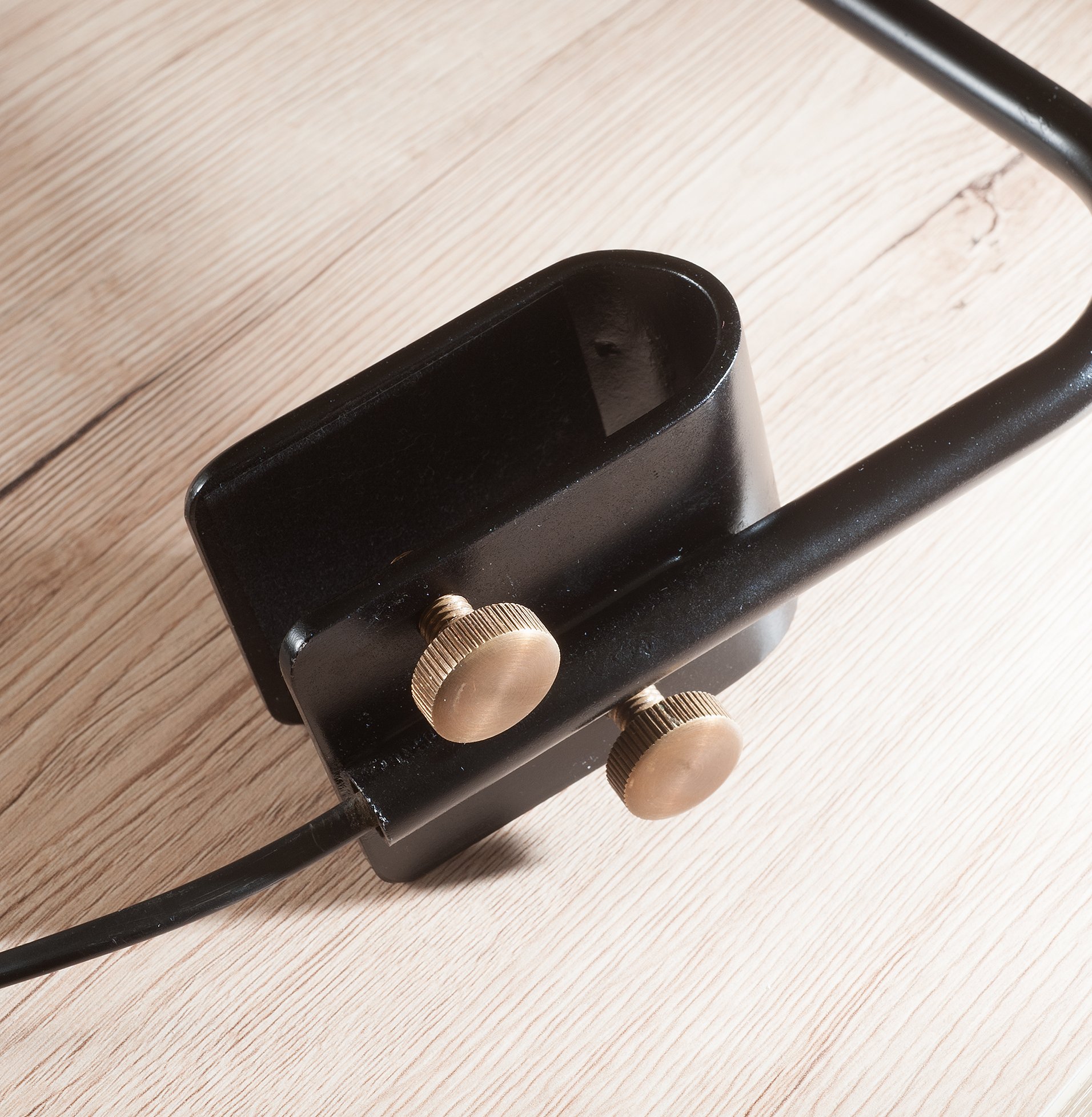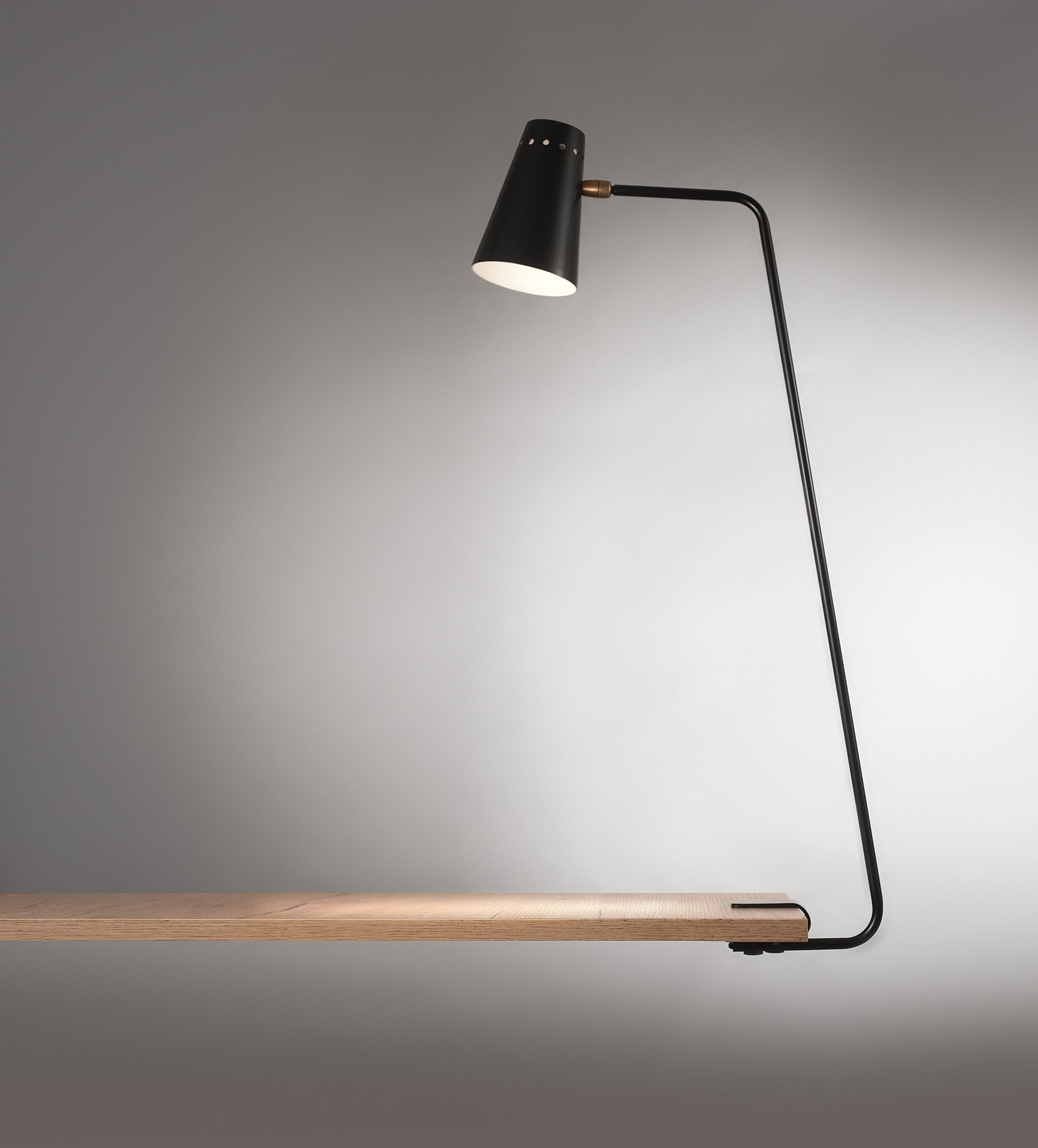 Clamp lamp by Robert Mathieu.Lacquered metal, brass.Robert Mathieu Edition. France, c. 1950.H. 92 cm ; D. 44 cm.
