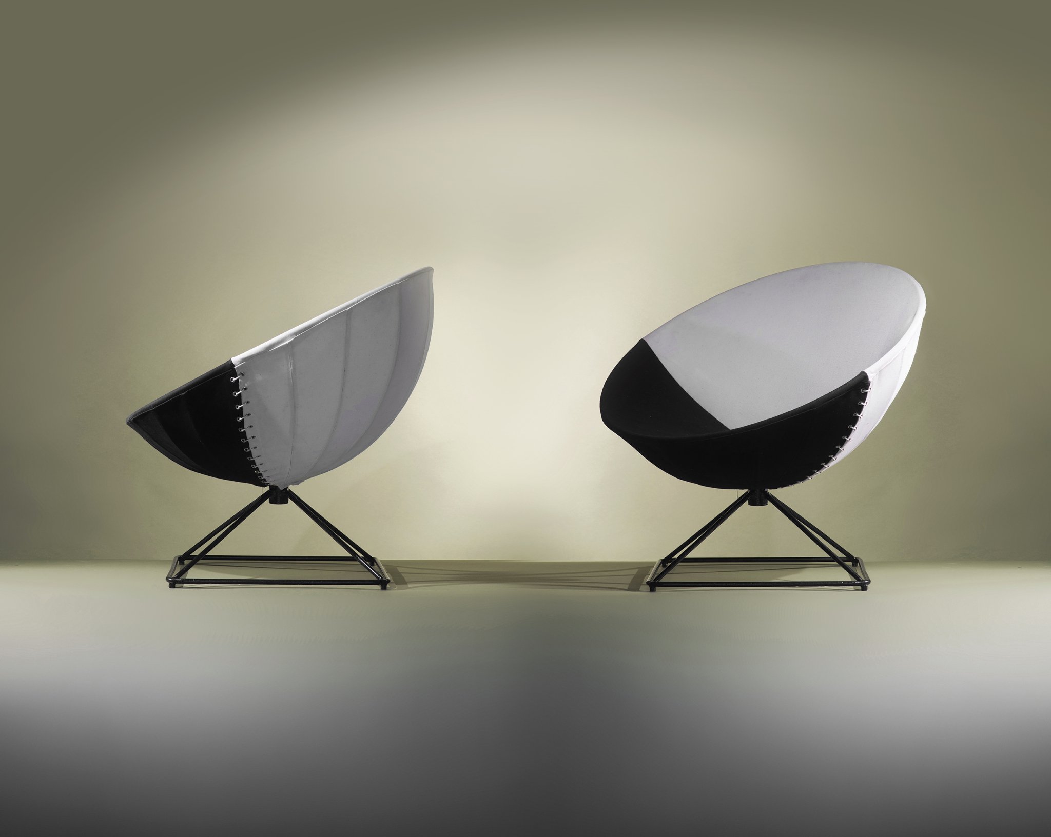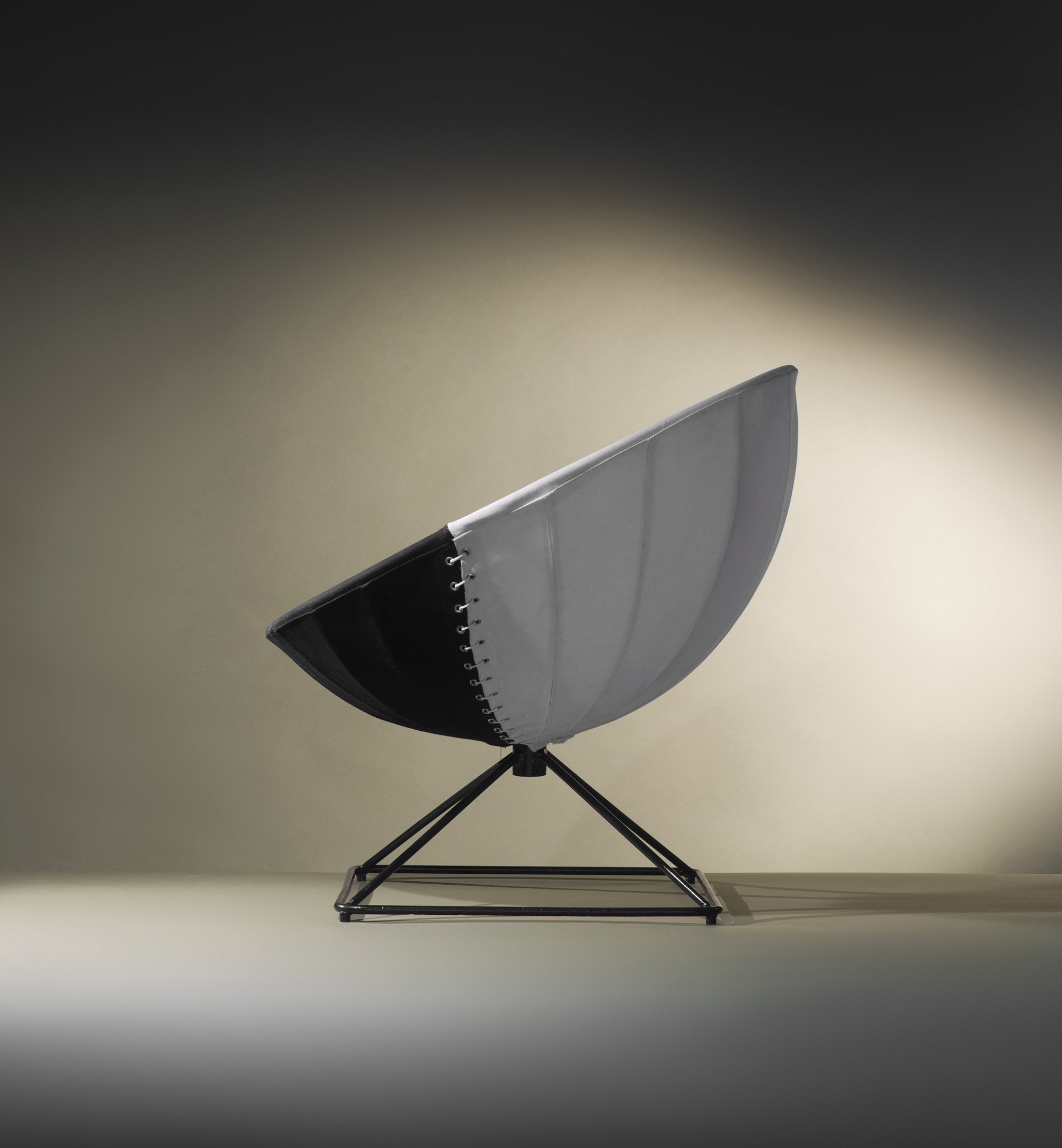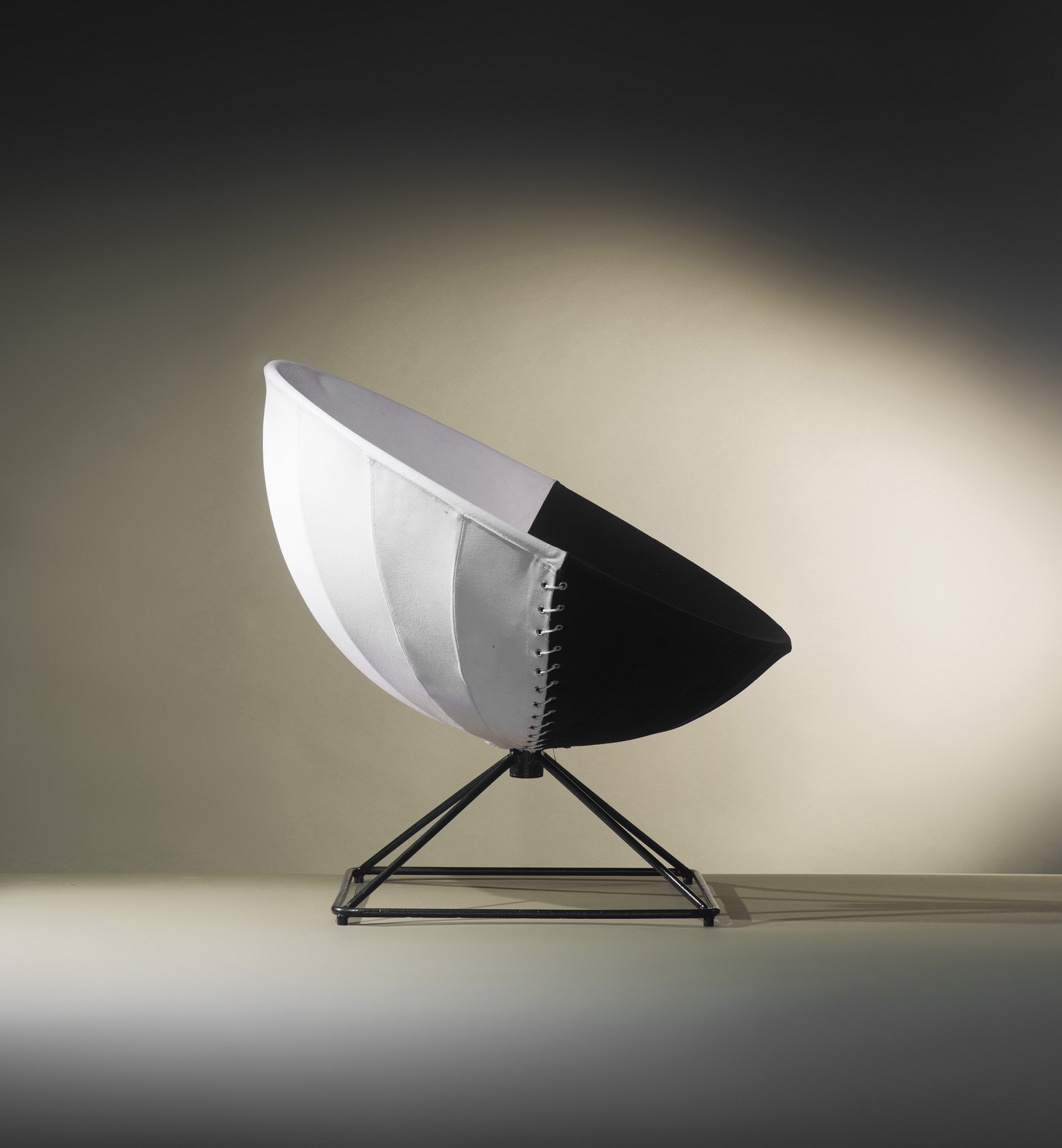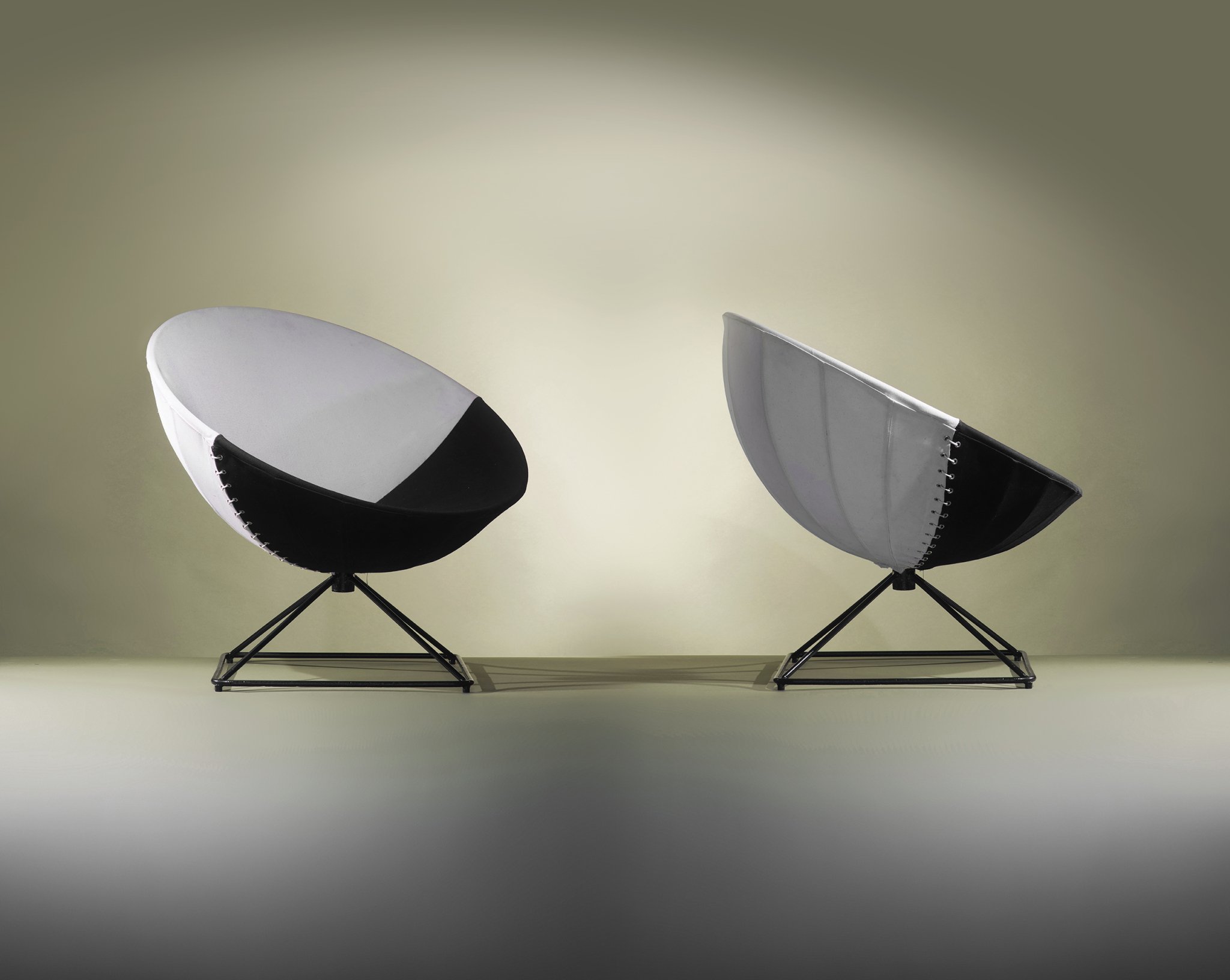 Black lacquered metal, black and white canvas