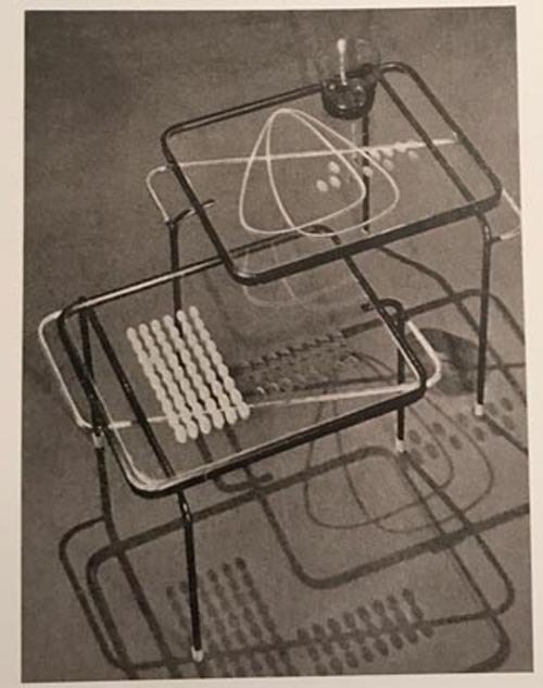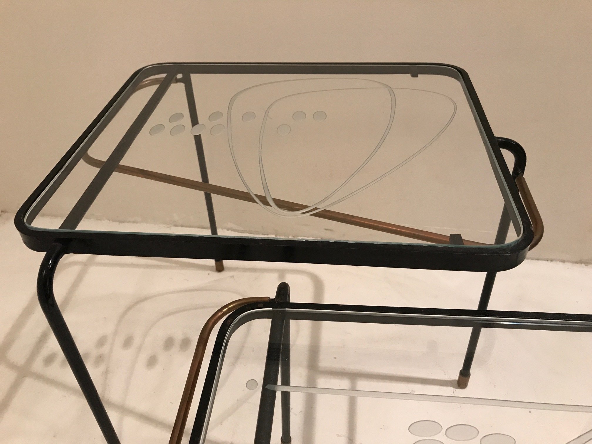 Lacquered metal and glass.