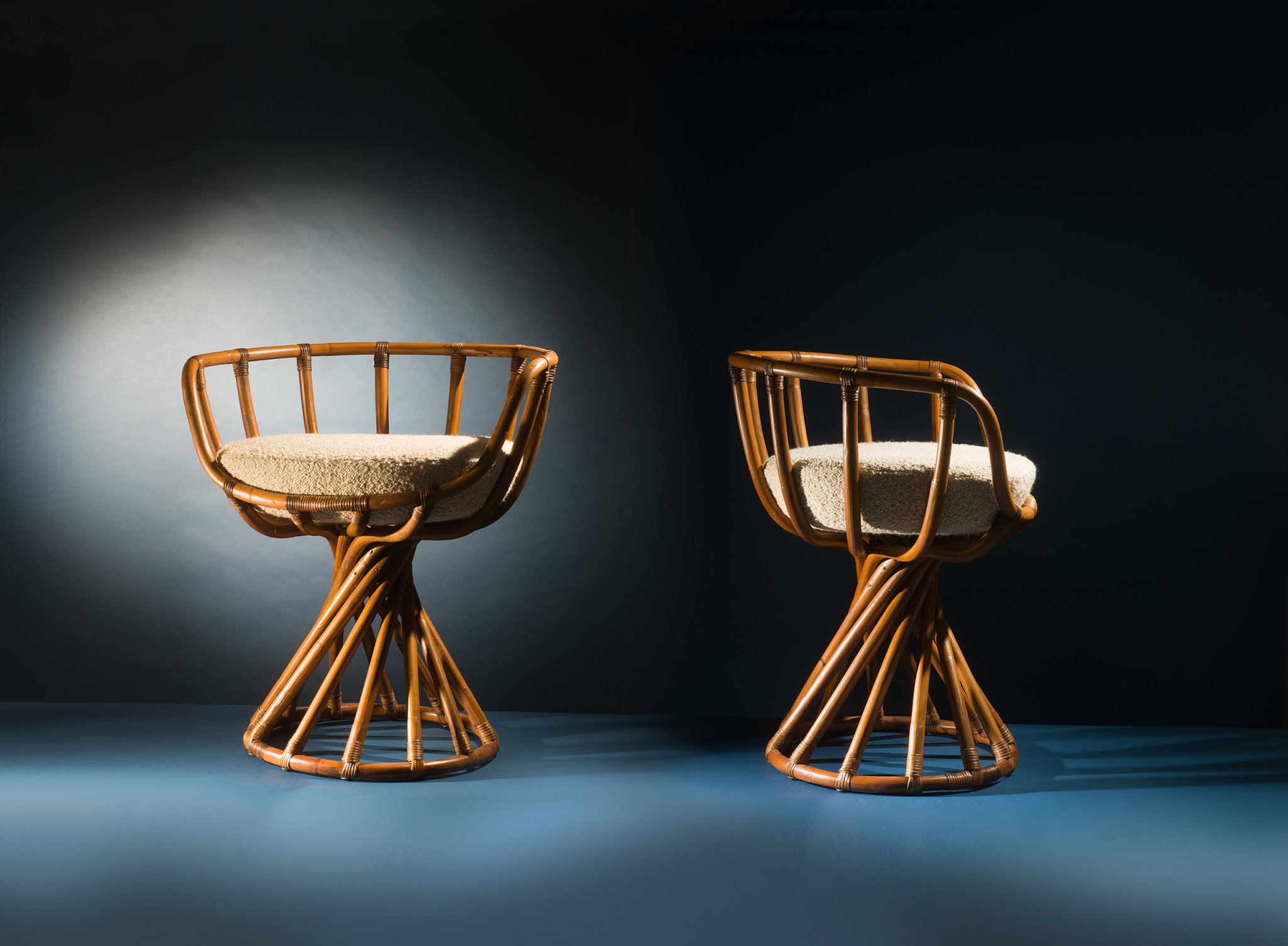 Rattan, foam and Karakoroum wool fabric by Dedar.