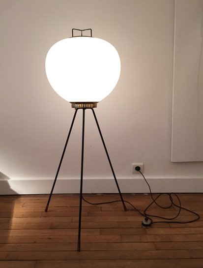 Brass, lacquered metal and opal glass.