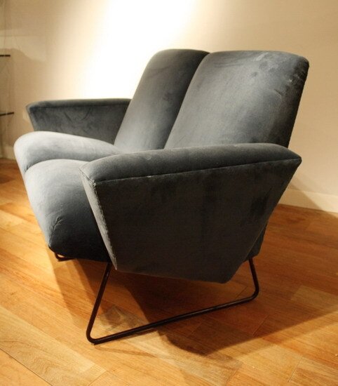 Lacquered metal and velvet.