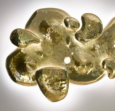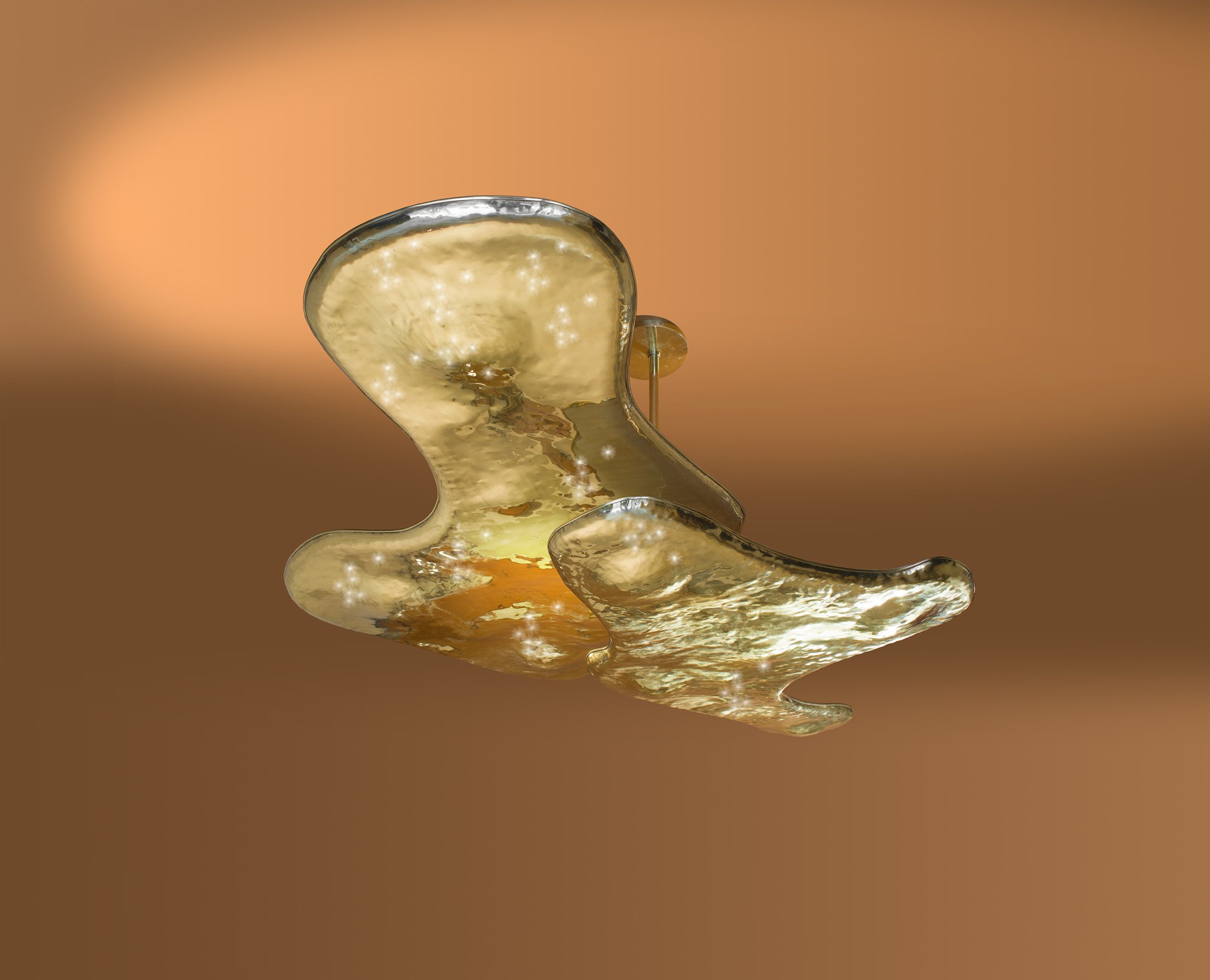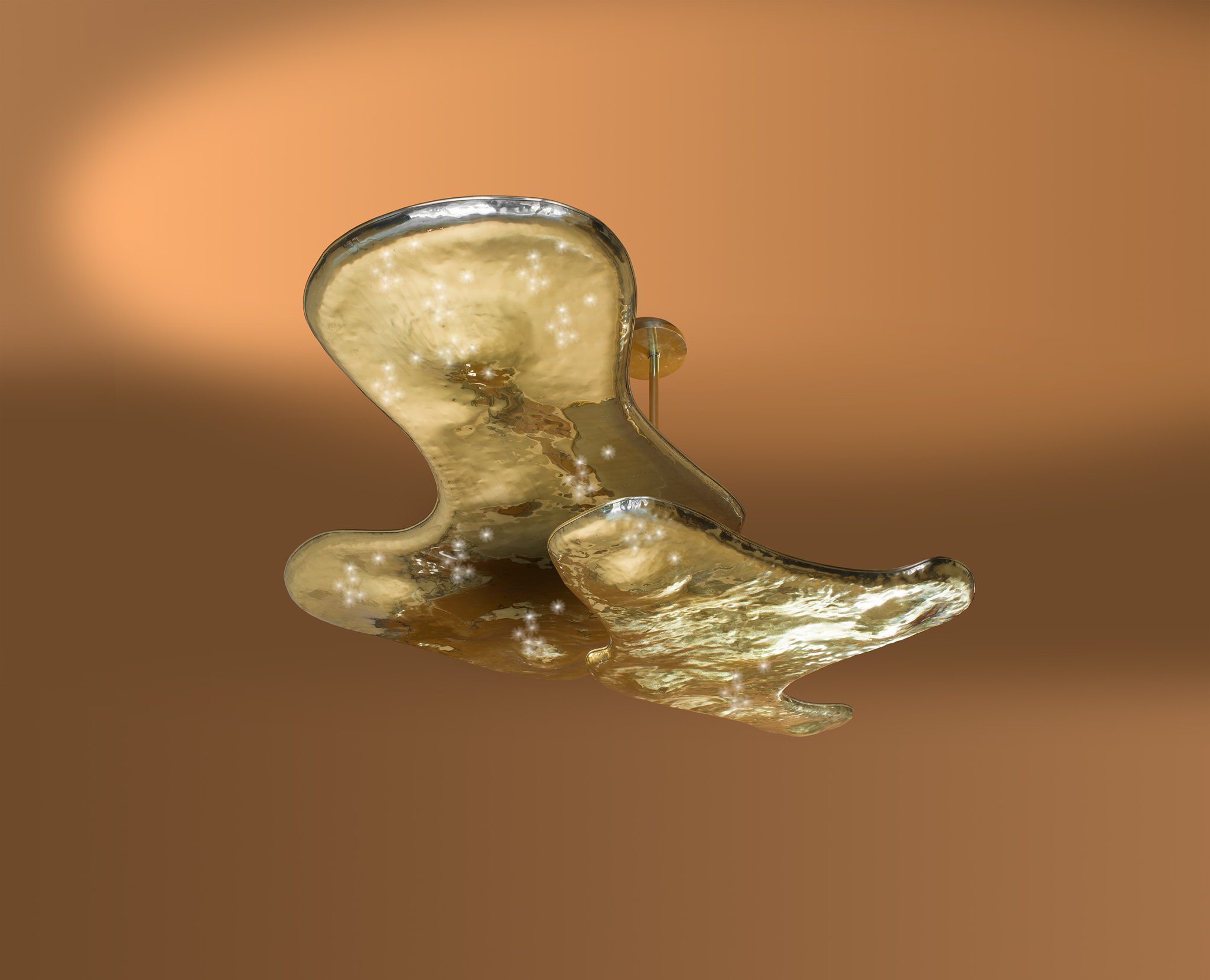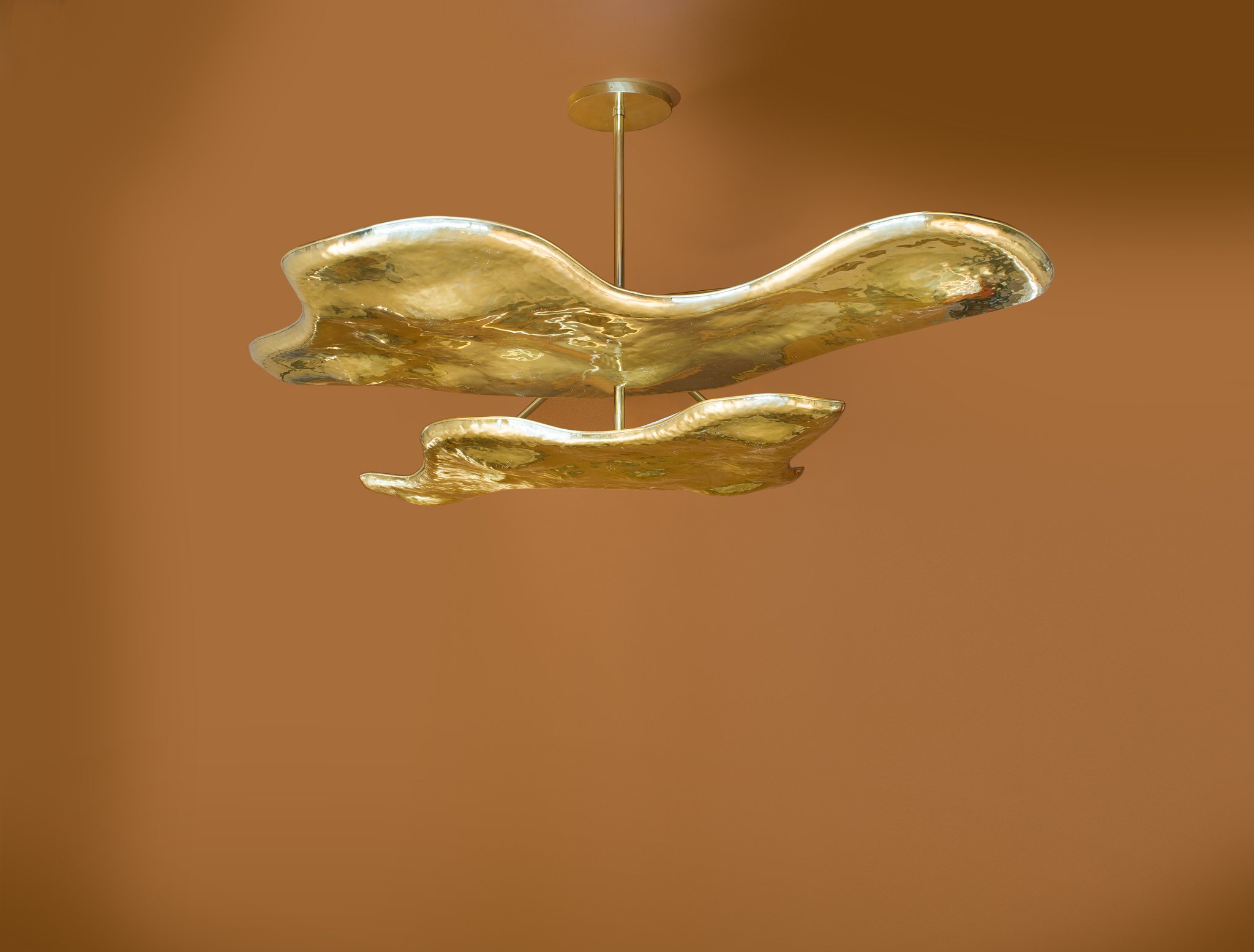 Hand sculpted and hammered brass, perforation, led lighting system.