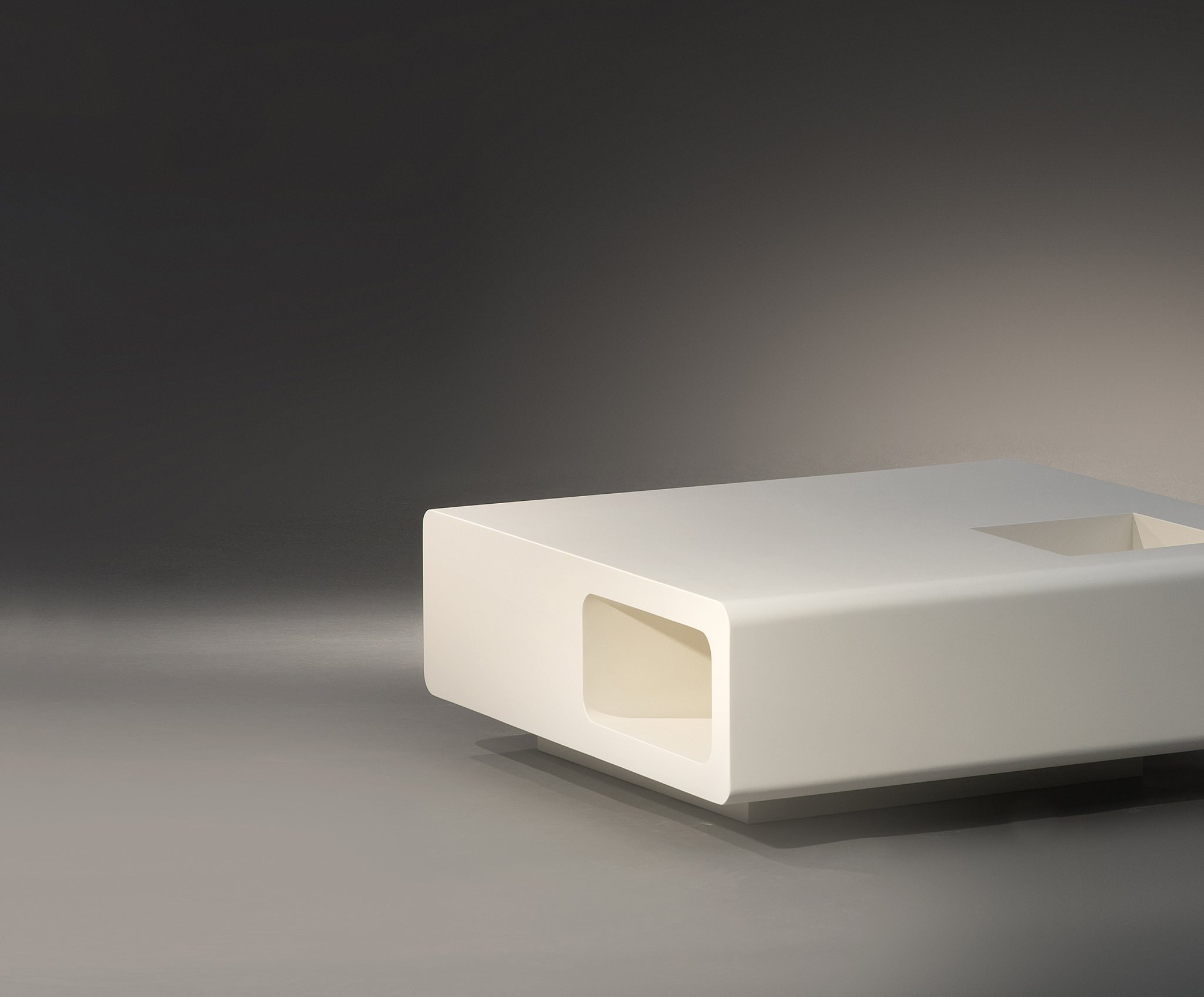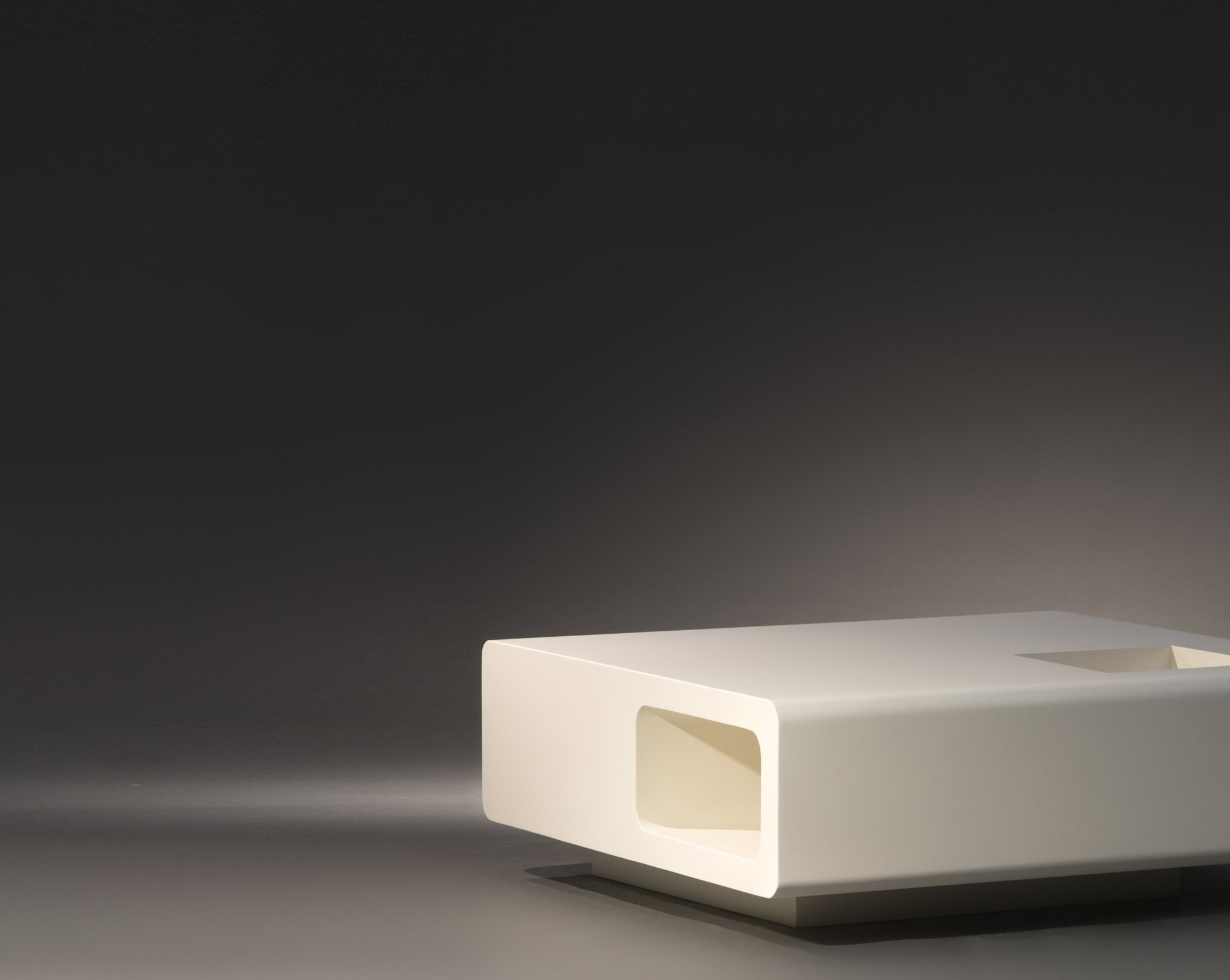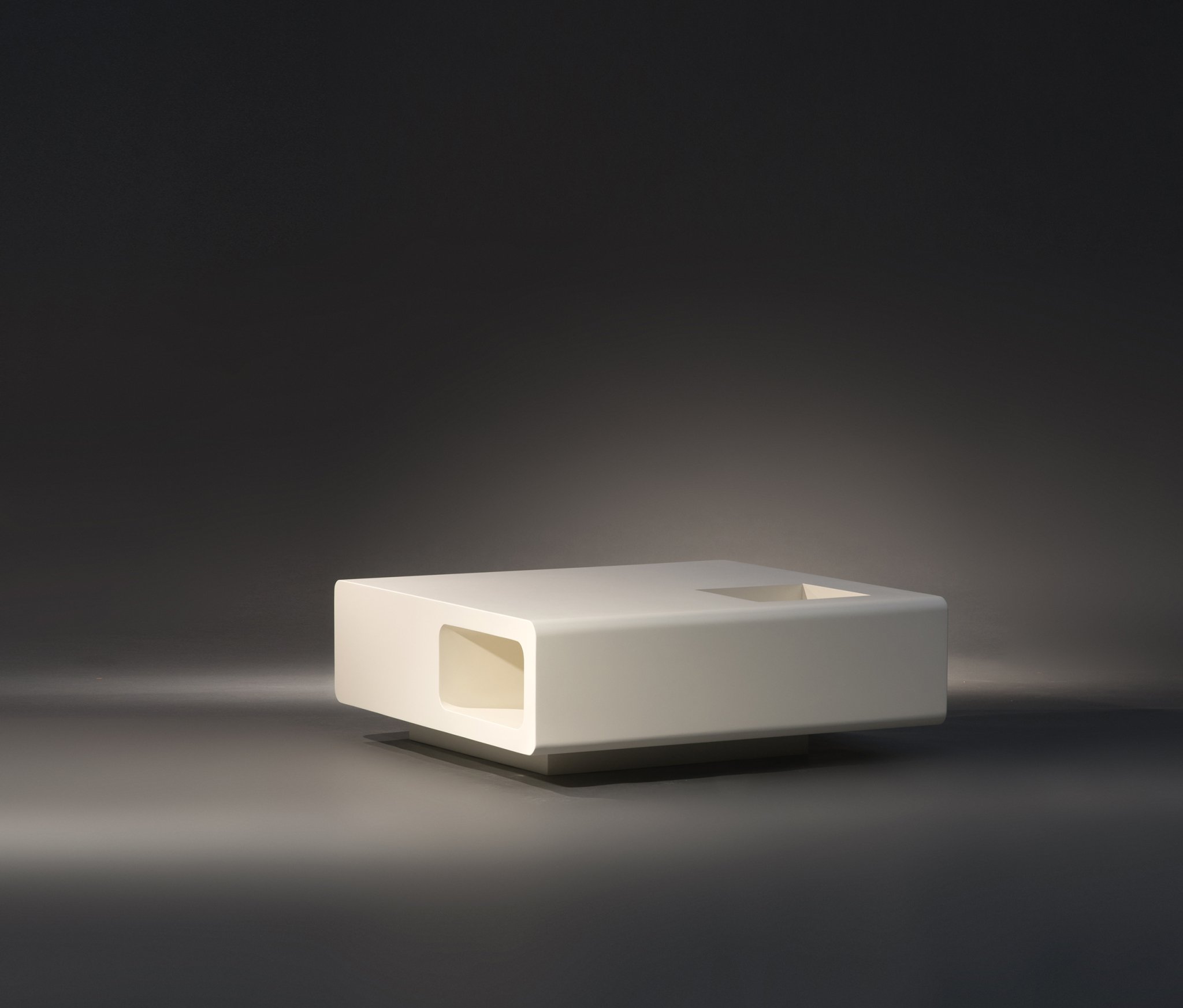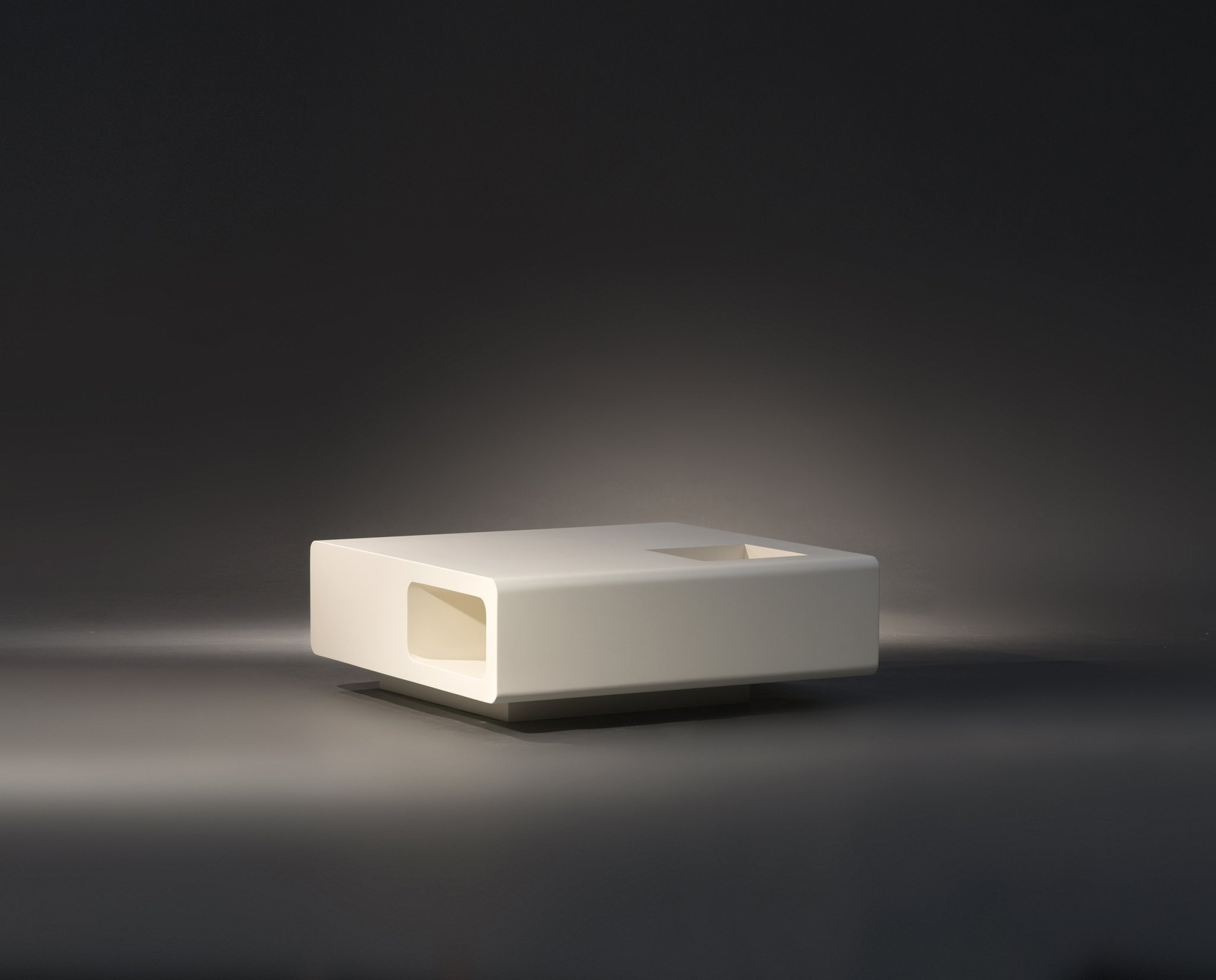 Michel Boyer coffee table.Lacquered wood.Rouve edition. France, c. 1970.L. 100 cm ; l. 100 cm ; H. 38 cm.