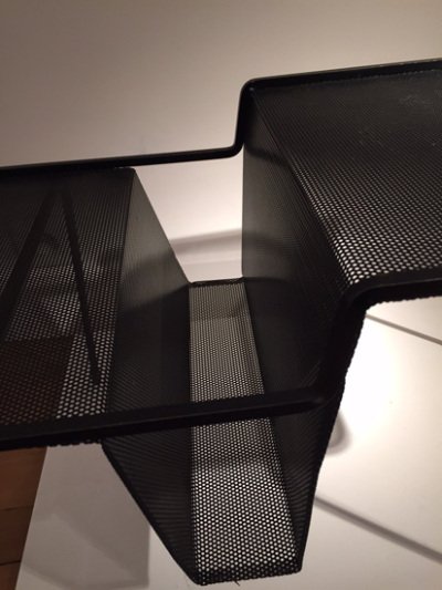 Hungarian/French Designer 1910-2001 Mathieu Mategot is a Hungarian born designer and became a naturalized French citizen in 1945. After studying at the University of Fine Arts in Budapest and training at the Janeck academy, Mategot worked as a set designer in the theater. He moved to France in 1931 and started his career as a window dresser at the Galeries Lafayette. His interest in tapestry quickly led him to meet people in the field, one of them Jean Lurçat with whom he became friends. Mategot enlisted during the war and worked in a cog factory. Because of his creative imagination he was soon given his own design office. His new position authorized more liberty and permitted him to mentally escape. After he returned to Paris he created many sample tapestry designs. He greatly contributed to renewing tapestry making as an artisan craft. He is responsible for a pique technique that allows the printing of many color variations. Despite his love of this discipline, he abandoned it in the 1970’s to pursue painting as he was disappointed in the little interest shown by the public. Mathieu Mategot is also known as an interior designer and decorator. His utilization of perforated sheet metal did not seem very empirical at the beginning. Elegant assemblies and folding techniques, equilibrium of volume and visual density all participate in the elaboration of a clever and expert system. The use of color in his interiors exudes a certain poetry. The neologisms formed to name his creations such as Rigitulle or Rigibande reflect the lightness and grace of his works.